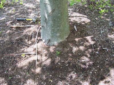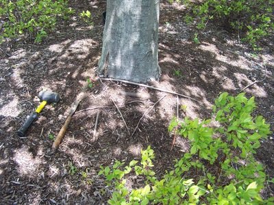 Large girdling root showing just below ground level