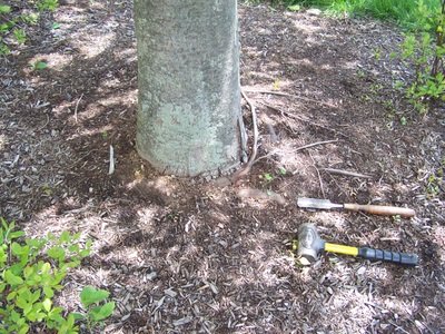 Many times we find girdling roots on improperly planted trees, where the baskets or planting container have been left on or not totally removed properly.