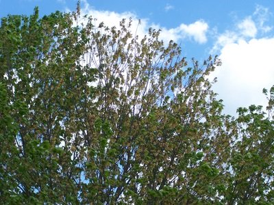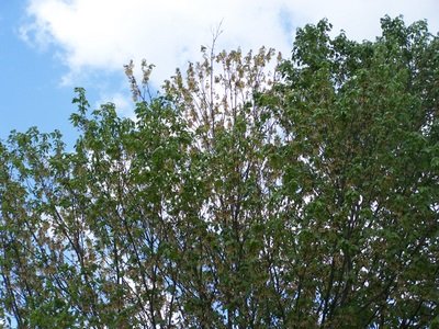 As time progresses, growth is hindered, leaves become smaller and lighter in color. Then the tree begins to produce fewer leaves and eventually you will begin to see die back and breakage.