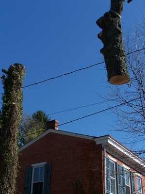 Removing a 200 year old uprooted Apple tree.